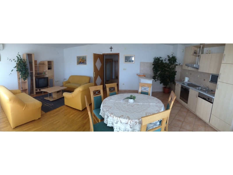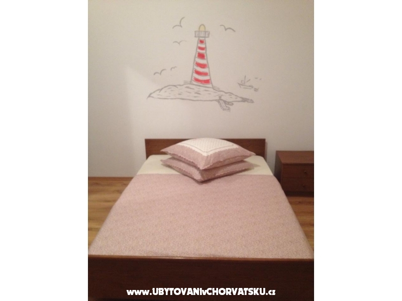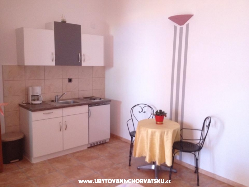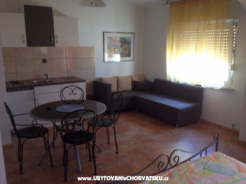 Nabízíme jeden velký apartmán a tři studio apartmány, které jsou vybaveny kuchykou a koupelnou, klimatizací a terasy s výhledem na moře a ostrov Brač.