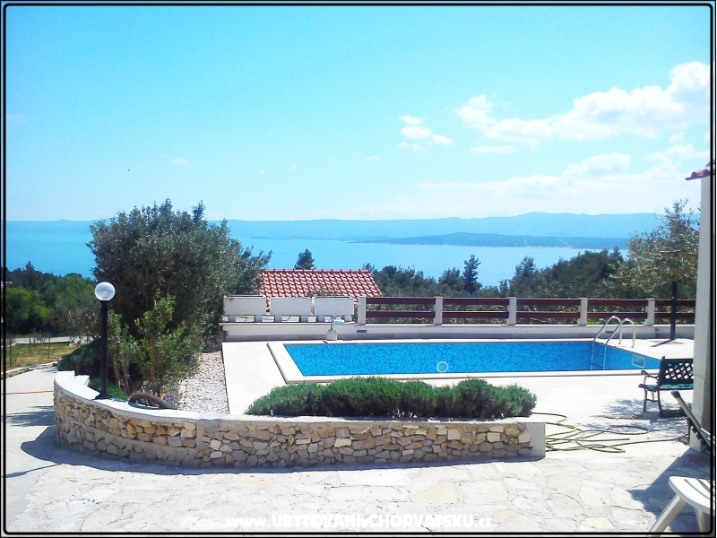 V domě se může ubytovat maximálně 10 osob ve dvou samostatných apartmánech. V 1. patře (90 m2) se nachází velký obývací pokoj, kuchy, TV kout, dvě ložnice, jeden dětský pokoj, dvě koupelny a velký balkon. V přízemí (70 m2) se nachází obývací pokoj, kuchy, dvě ložnice s manželskou postelí, přistýlka v obývacím pokoji, a velká terasa s grilem.