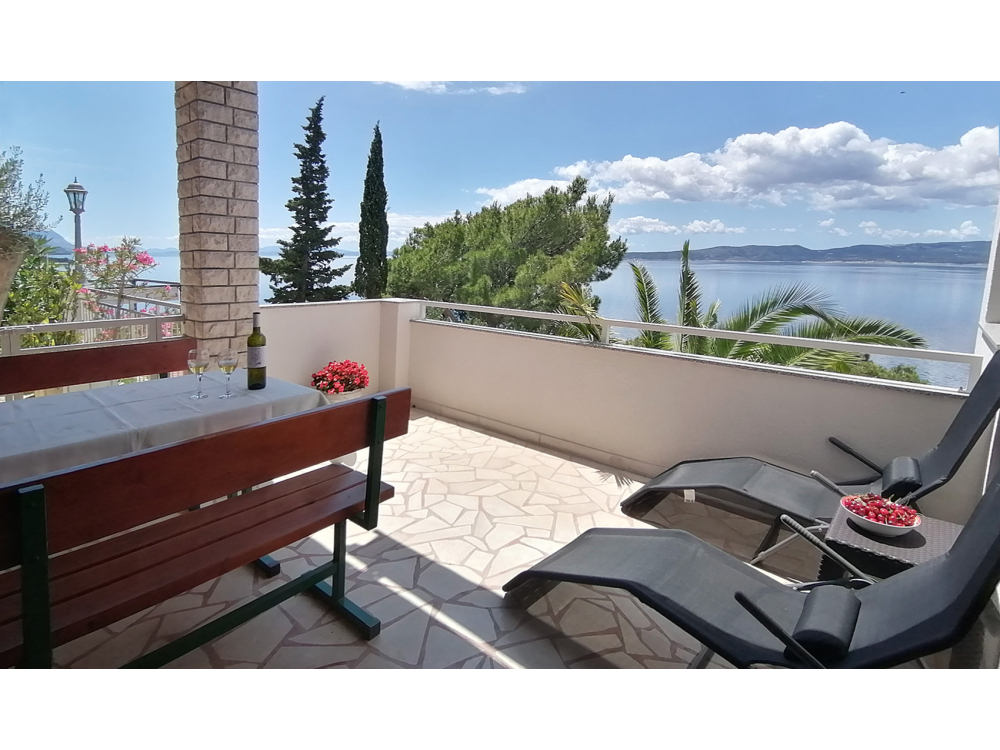Nachází se v prvním patře a má dvoulůžkovou ložnici s rozkládací pohovkou, koupelnu, malou předsí a kuchyský kout. Prostorná terasa nabízí úchvatný výhled na moře a ostrovy.