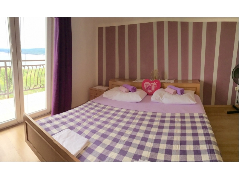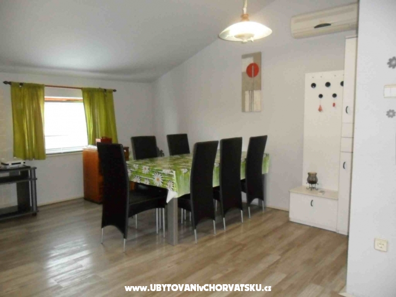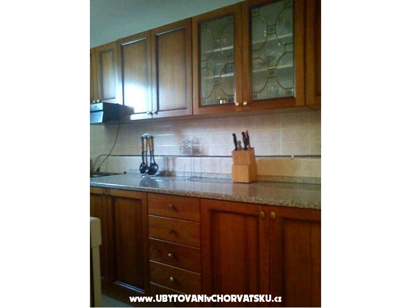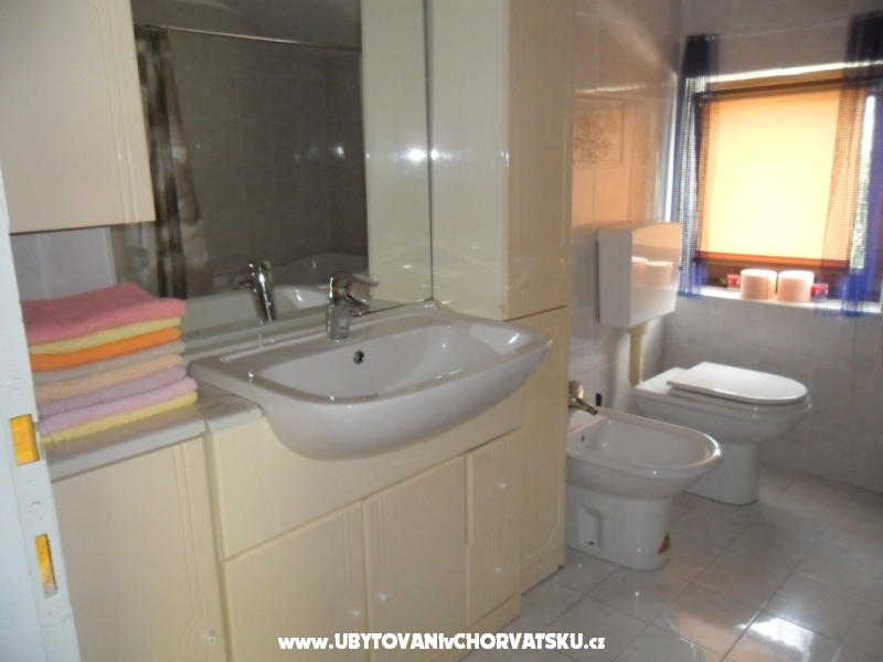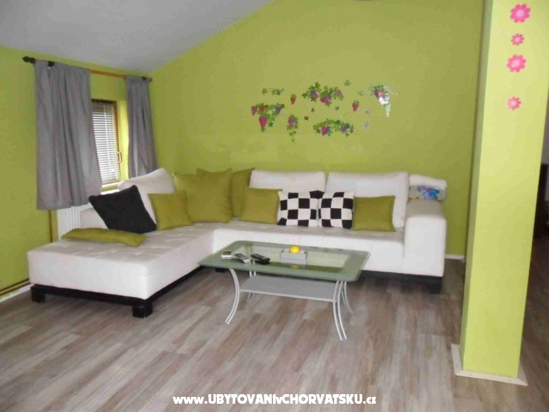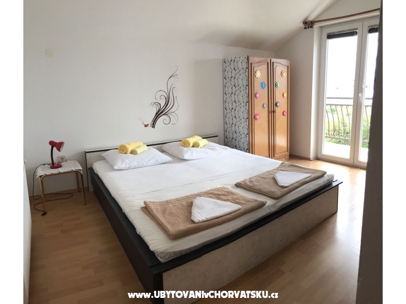Krásně zařízené apartmány pro 4 osoby, s balkonem či terasou a výhledem na moře. Klimatizováno. Upravené okolí domu pro posezení, pro děti, s grilem. Oplocené parkoviště u domu, zdarma internet. Obchod vzdálen jen 100 metrů stejně jako zastávka autobusu.
