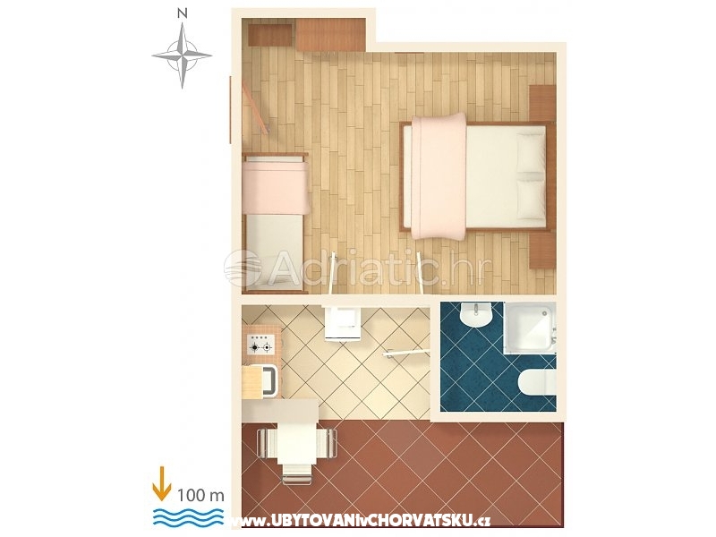 Dům vě městě Brist, Makarska - Střední Dalmácie, jsou tu studio apartmány (3) a vzdálenost od moře je 100m. V blízkosti je oblázková pláž. Dům je rozdělen na více apartmánů, takže běhěm Vašeho pobytu tam budou pravděpodobně i další hosté. Majitelé žijí v domě. Internet v ceně, parkování zajištěno, uvaziště člunu možné po předchozí rezervaci. Pěšky se dostanete do samoobsluhy, restaurace. Ve vzdálenosti více než 1km jsou lékárna, první pomoc, bankomat, diskotéka, centrum, internetová kavárna. Majitelé jsou Vám vždy k dispozici.