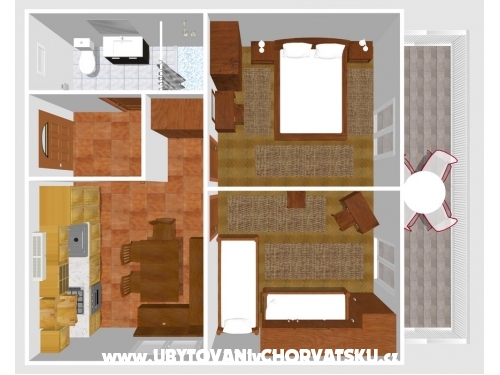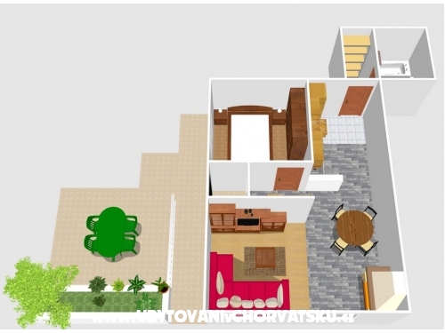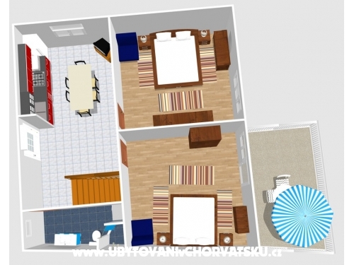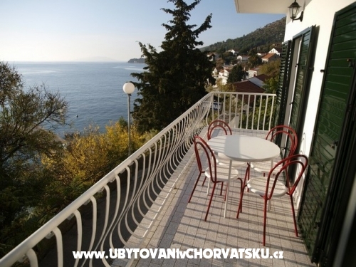 Apartmány mají vlastní vchod a jedno parkovací místo pro každý apartmán v okolí domku. Z terasy je krásný výhled na moře a poloostrov Pelješac.