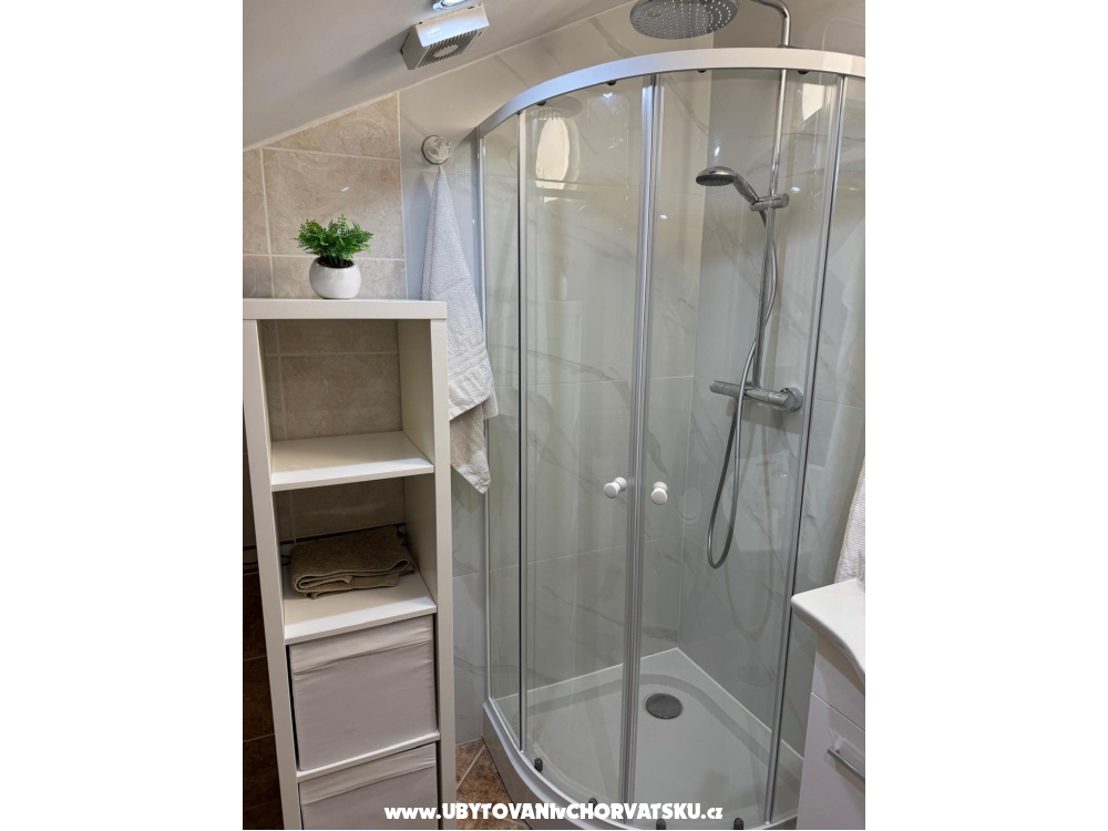 Njivice - pěkně zařízený čtyřpokojový apartmán 110 m2 ve druhém patře budovy s 5 apartmány. Apartmán se skládá ze tří ložnic s novými luxusními manželskými postelemi (180x200) s plazmovou televizí, velký obývací pokoj s rohovou pohovkou, která se rozkládá na 300x200 manželskou postel, plně vybavená kuchy, jídelna, koupelna se sprchovým koutem, WC a pračka, rustikální balkon s výhledem na moře, řeku, Opatiji a Kvarnerský záliv a velká rustikální terasa 20 m2. Byt má zahradu 40 m2 s grilem, dvě skladovací a jedno parkovací místo (s možností více parkovacích míst). Apartmán je klimatizován, se satelitní TV a bezdrátovým internetem (WI-FI).