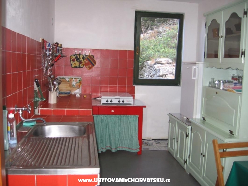 Dům se nachází v malé zátoce, v borovém lese, přímo u moře a v blízkosti jsou ještě 3 domy. Není zde přístup autem - jen pěšky cca 20 minut. Auta se zaparkují u hotelu Sunčana Uvala. V domě není elektřina - zařízení je na plyn. Kolem domu je veliká terasa s grilem, k pláži je to 20 metrů. Kuchy je plně vybavená stejně tak i koupelna. Hosté si musí přivést vlastní povlečení a ručníky.