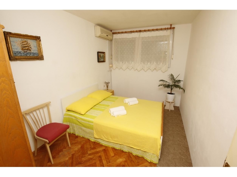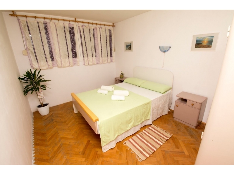 Apartmán v domě, v prvním patře, 62m2. Dvě ložnice se dvěma dvoulůžkovými postelemi. Koupelna, wc, sprcha, veliký obývací pokoj 27m2 s kuchyní, lednička s mrazákem, nádobí a vše potřebné pro stravování, veliká klimatizace v obývacím pokoji a ještě jedna z druhé strany apartmánu pro příjemný chlad, TV , internet. Obchody v blízkosti, trh, rybárna, pekárna, pošta, bankomat ... vše v blízkosti. Minutu od písečné pláže. Parkování v ceně.
