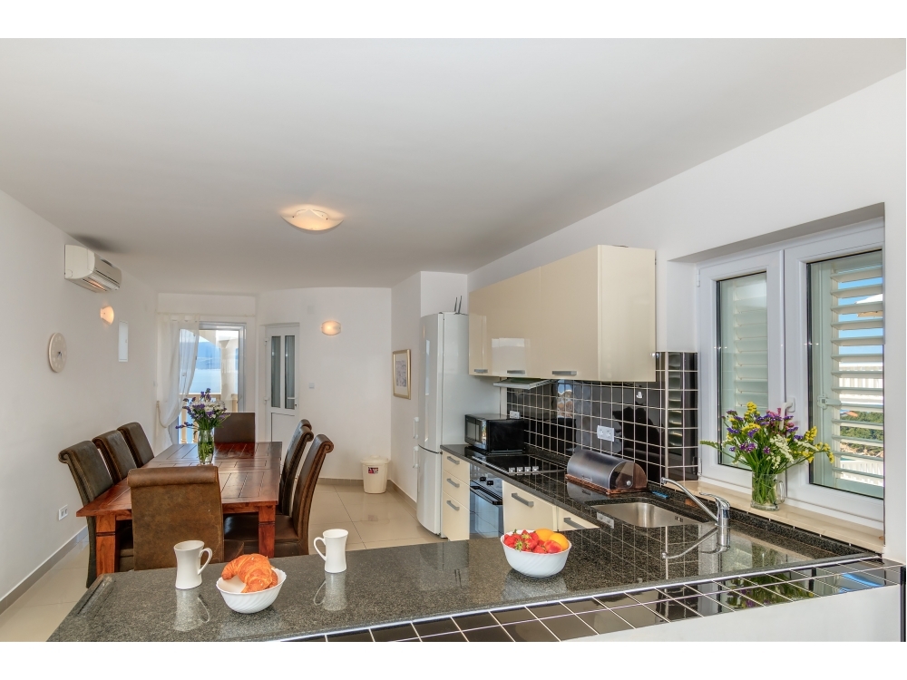 Z rozlehlé jižní terasy a balkonu je úchvatný výhled na otevřené moře a ostrovy Brač a Hvar, zatímco na severní straně vás překvapí úžasný výhled na hory.