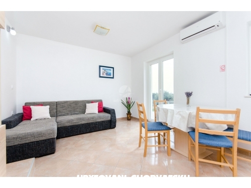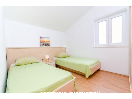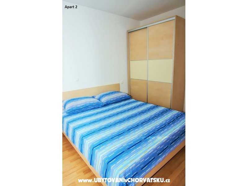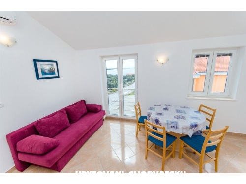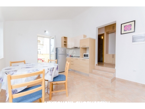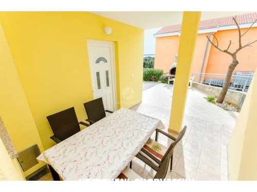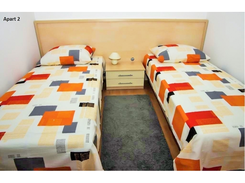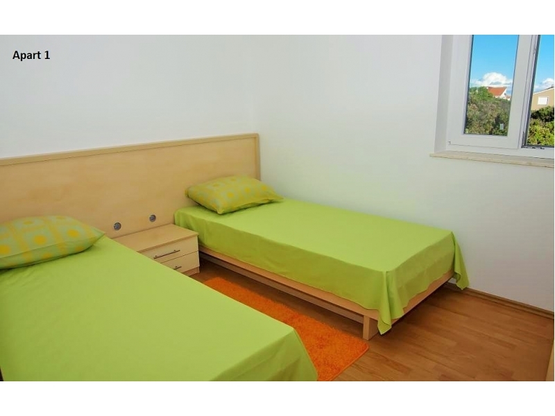 Nabízíme k pronájmu dva apartmány v domě-bungalovu v Mandre: jeden apartmán v prvním patře a druhý v přízemí. Apartmány se nacházejí 180 m od moře, nachází se na vyvýšeném oblasti s krásným výhledem na Jaderské moře. Apartmány jsou umístěny v méně osídlené části Mandre, obklopené jehličnatými lesy, které vytváří tu správnou atmosféru pro relaxaci a zábavu. Každý apartmán má kuchy a obývací pokoj, koupelnu a WC, dvě ložnice, jednu s manželskou postelí, jednu s oddělenými lůžky. Každý apartmán má vlastní terasu a bezplatné parkování. Na pláži je to 200 m. Možnost pronajmout loď v nedalekém přístavu. Jako potvrzení rezervace se platí předem záloha ve výši 100 eur. Pobytová taxa je zahrnuta v ceně.Podívejte se prosím na kalendář a podívejte se na volné termíny. Každý host uvítáme s radostí, a pohostíme s domácími výrobky. Vítejte!