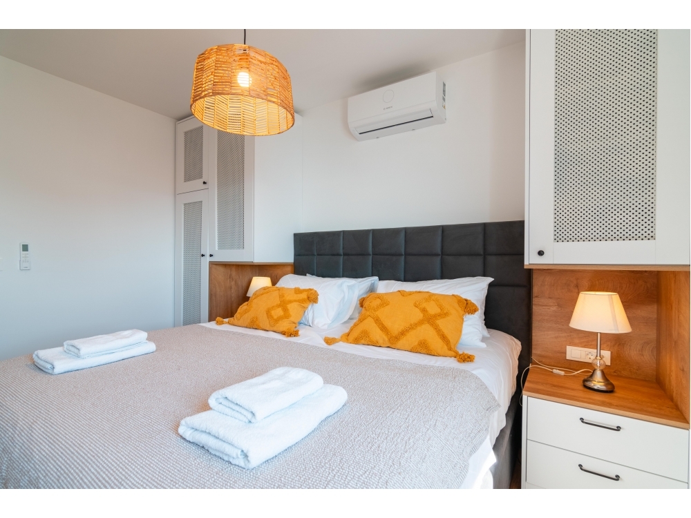 Utečte do luxusu s naším nádherným penthousem se dvěma ložnicemi, komfortem rozloženým do dvou pečlivě navržených podlaží pro maximálně 6 osob.