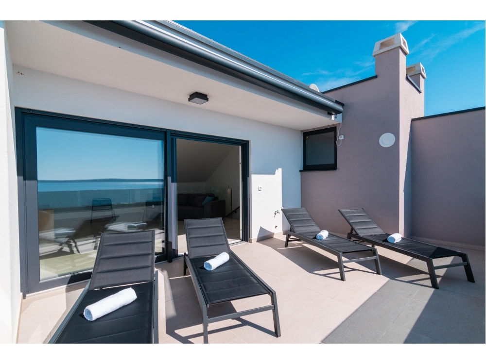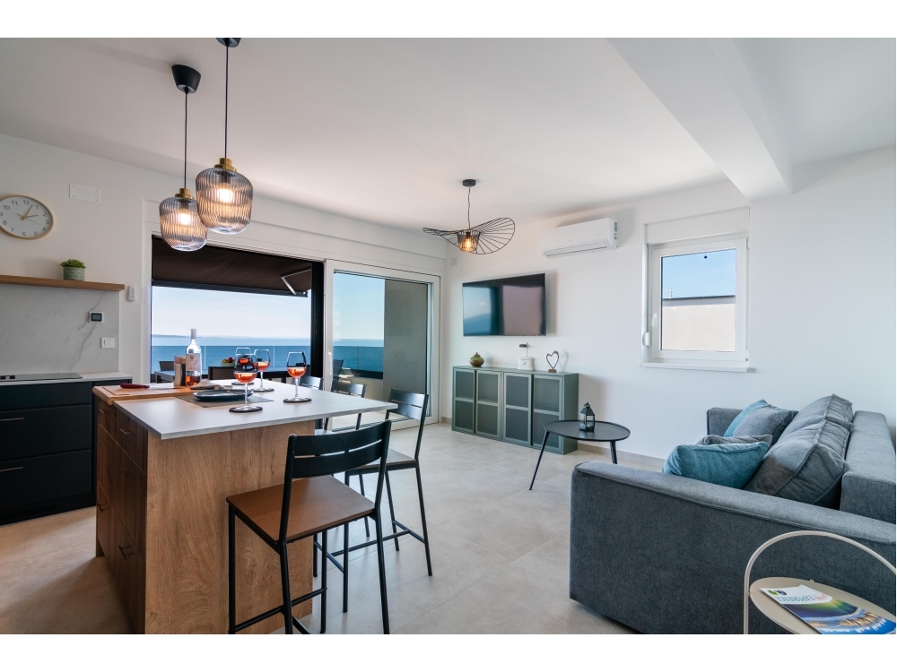 Ponořte se do krásy pobřežní krajiny, když budete relaxovat na venkovním nábytku, popíjet svůj oblíbený nápoj a užívat si jemný mořský vánek.