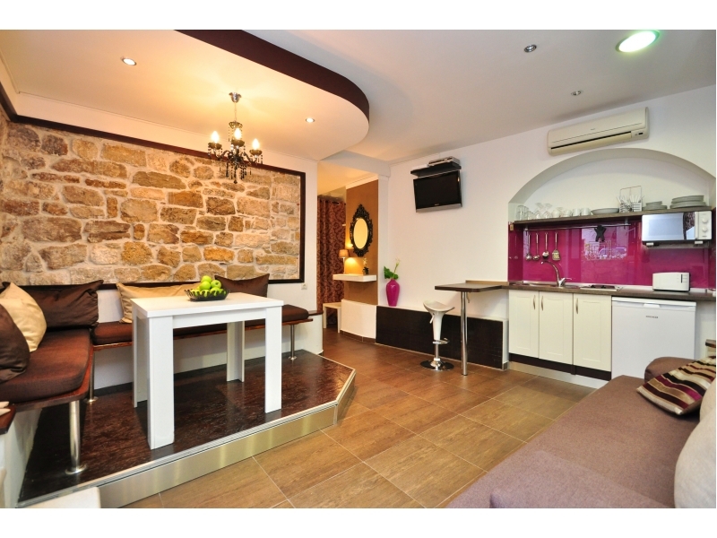 Nově postavený apartmán Kuni se nachází v centru Splitu, ve středu 1700 rok starý Diokleciánův palác, v centru všeho město, kulturních a turistických akcí. Deset kroků od z prvního a největšího náměstí, Pjaca, deset kroků od nejstarších svtových catedral Sv.Duje, a deset kroků od RIVA, nejoblíbenější místo setkávání pro turisty i místní obyvatele. Apartmán mít jeden pokoj, koupelna, obývací pokoj, kuchy, a to vše je kompletně nové zařízené.