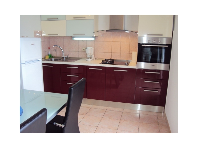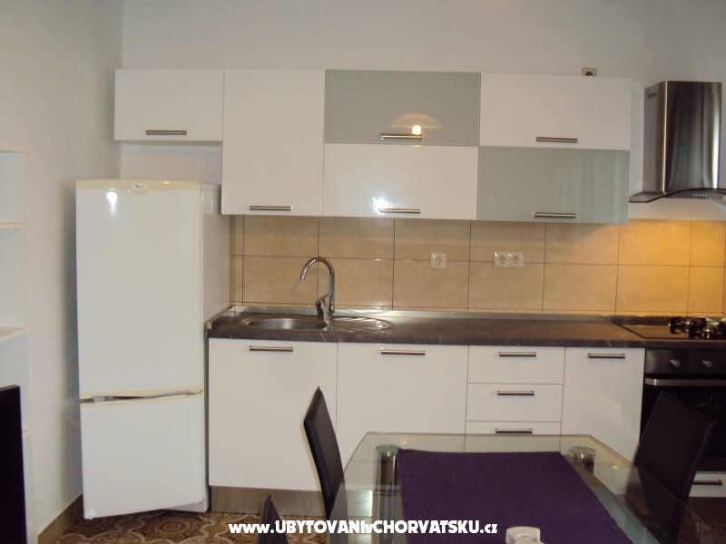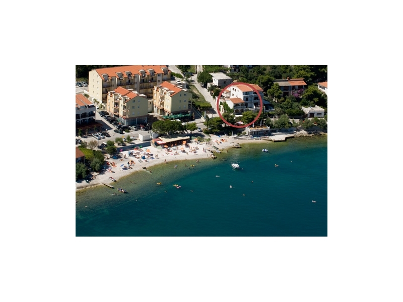 V prvním patře jsou dva apartmány, každý s dvěma ložnicemi, obývacím pokojem s rozkládací pohovkou, kuchy, koupelna, obzvláště jeden WC, velká terasa 20m2 s výhledem na moře.