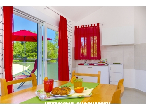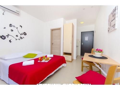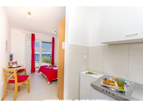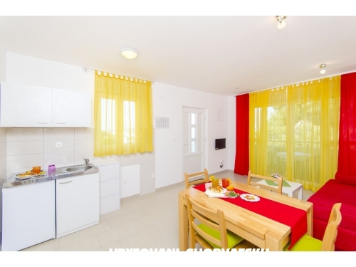 Nově postavená budova 70 metrů od moře, v blízkosti pláže, obchodu, restaurací. Apartmány jsou příjemně zařízené.