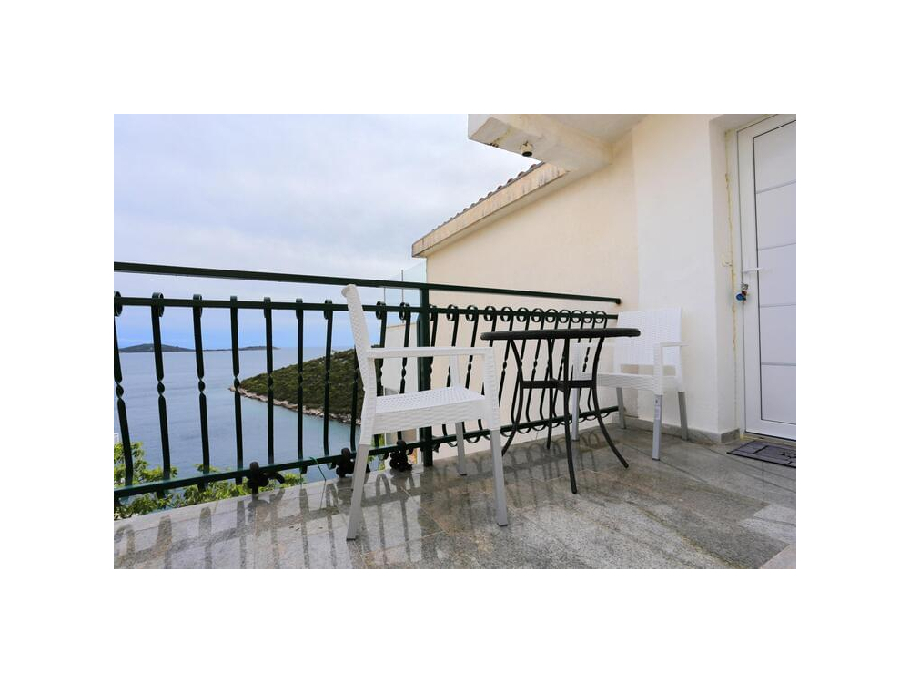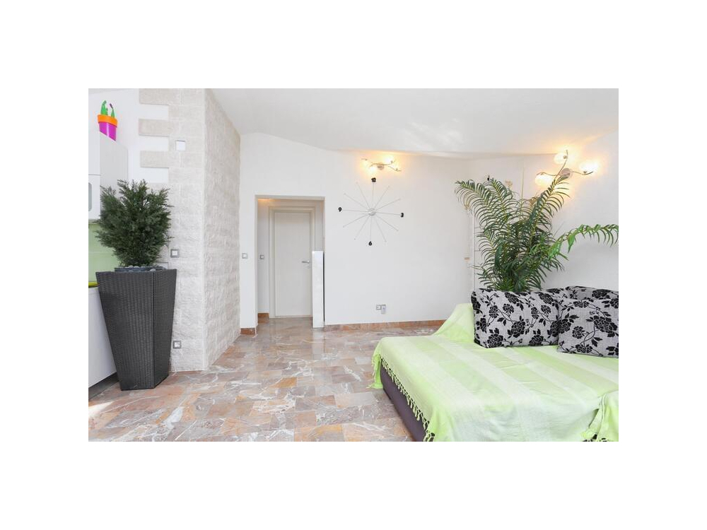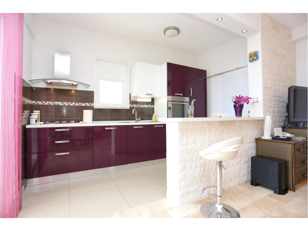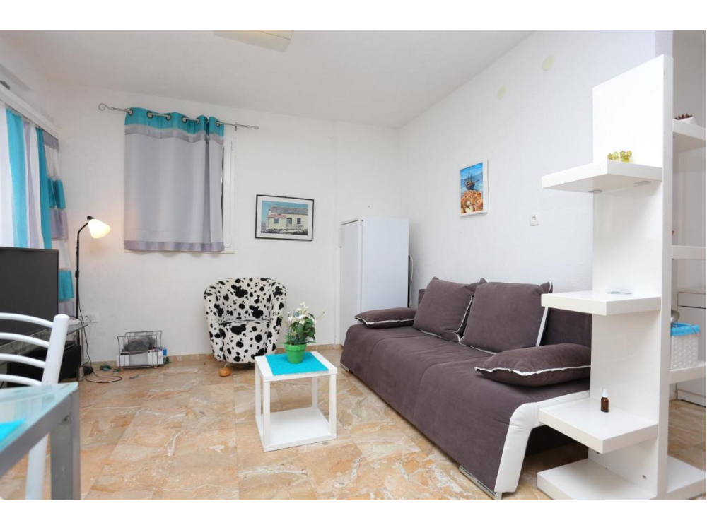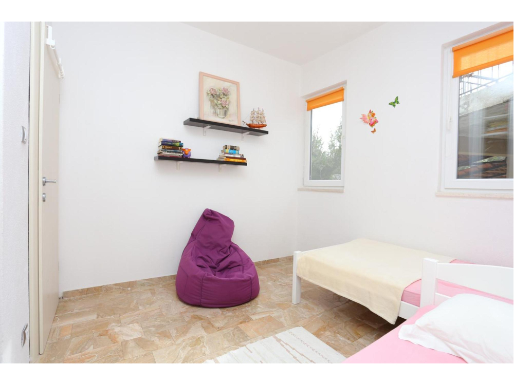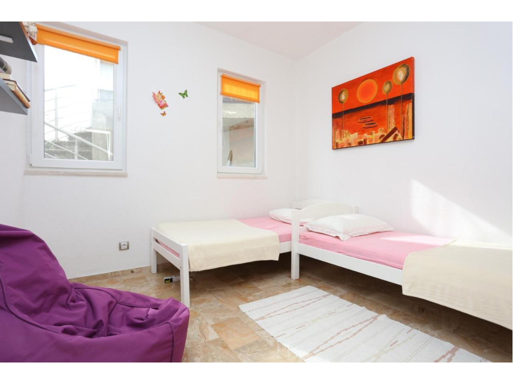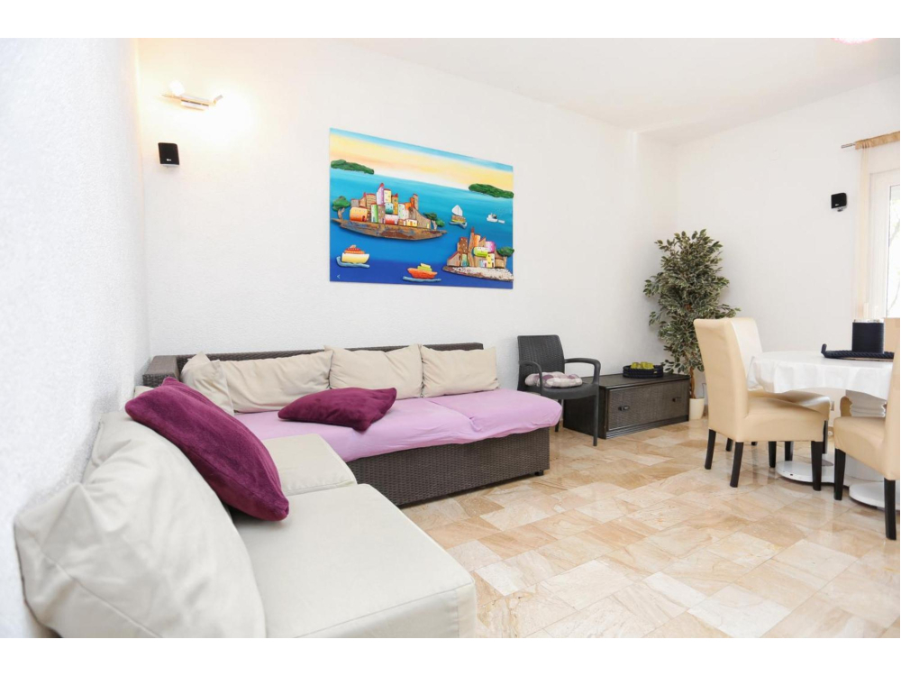 "AP.SONJA" - 1 obývací pokoj, 2 samostatné ložnice a 1 koupelna se sprchou. V kuchyni najdete varnou desku, lednici, myčku nádobí a kuchyňské nádobí. Apartmán má také gril. Terasa s výhledem na moře, klimatizace a TV-SAT.