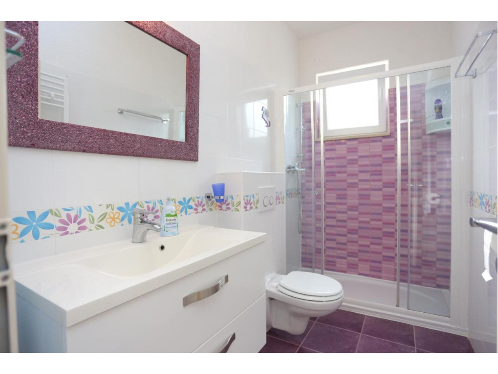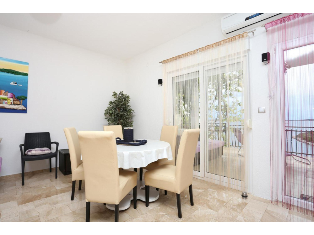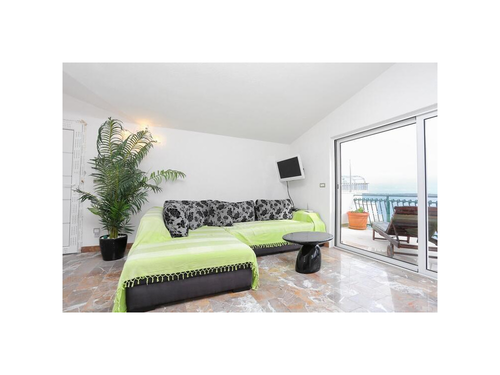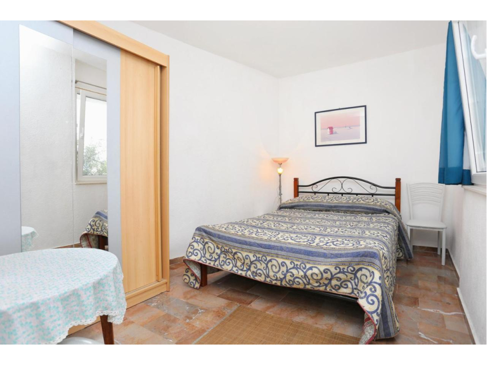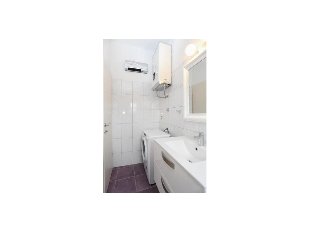 "AP.VERA" - Tento prostorný apartmán má 3 ložnice, 2 koupelny s vanou, posezení a terasu, kde si můžete odpočinout. Dobře vybavená kuchyň. Klimatizovaný apartmán má TV, pračku, soukromý vchod a jídelní kout s výhledem na moře.