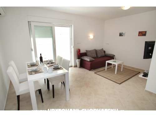 Apartmány Villa Iris se nachází 200m od nejbližší pláže, jsou postavené v roce 2012 a vybavené kuchyní, wifi, soukromým parkovištěm. Centrum města Seget Vranjica je vzdáleno 200 metrů. Všechny apartmány mají balkon, plochou TV se SAT, kuchyni s myčkou a jídelnu a koupelnu se sprchou. Apartmány v přízemí jsou vhodné pro invalidy. V kempu vzdáleném 50 metrů jsou dostupné různé sportovní aktivity jako je tenis, jfotbal, windsurfing, je možné domluvit v centru pronájem kol. Několik barů a restaurací se nachází ve vzdálenosti do 200 m od domu. Autobusová zastávka je 250m od domu. město Trogir s trajektovým přístavem, starým centrem pod ochranou UNESCO je vzdálen 6 km.