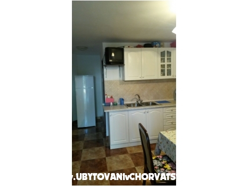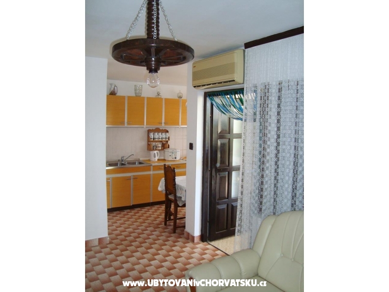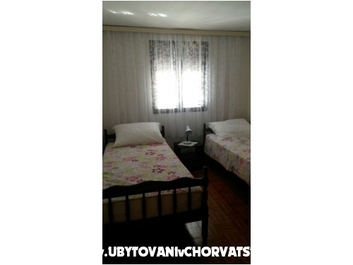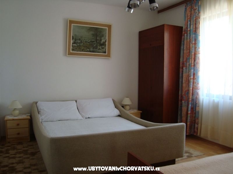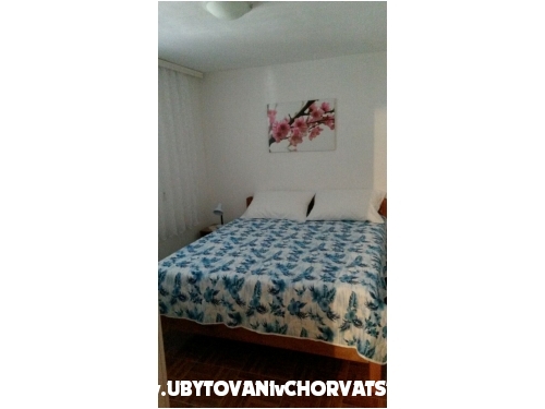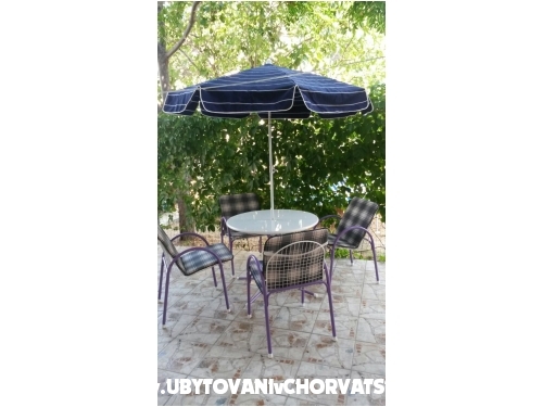 Minimální délka pobytu j e5 dní. Prostorný apartmán v klidné ulici, velká terasa mezi zelení a s celodenním chládkem, dvě velké ložnice, obývací pokoj, koupelna, dobře vybavená kuchyně, společná venkovní sprcha, možnost použití grilu, 2 parkovací místa ve stínu.