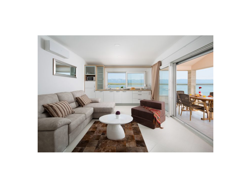 Vista Royal je čtyřhvězdičková villa umístěná jen pár metrů od moře. V okamžiku, kdy vkročíte do jednoho ze 4 luxusně zařízených apartmánů očaruje Vás panoramatický výhled na moře a pohoří Velebit. Obrovské posuvné dveře a velké okna vytvářejí pocit, jako by jste byli na širém moři. K dispozici Vám je dvou ložnicový apartmán v přízemí a tři jedno ložnicové apartmány na prvním a druhém poschodí villy.