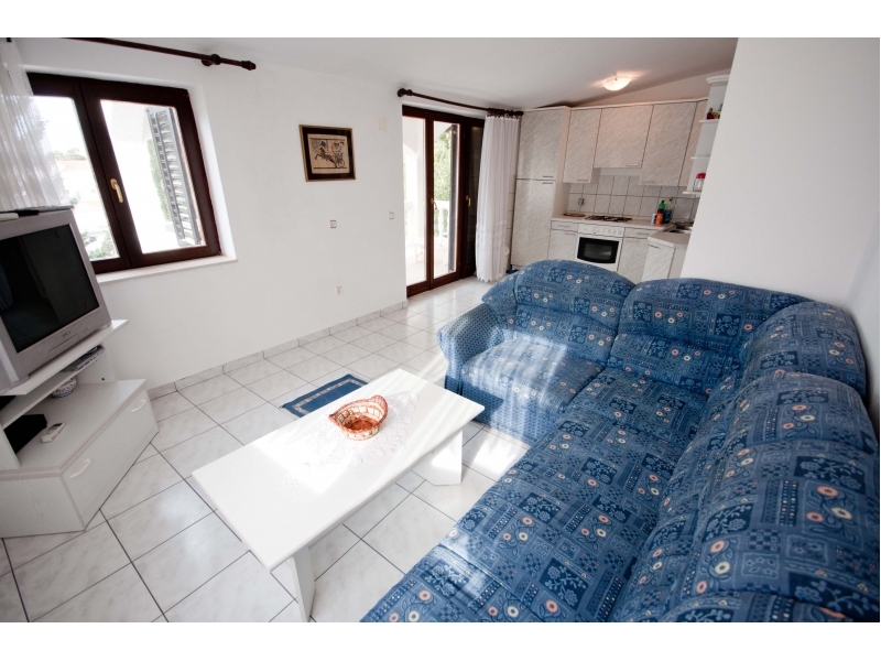 Příjemně zařízený, komfortní a prostorný apartmán (85m2) s vlastnímvchodem, v prvním patře vily, v níž jsou jen 2 apartmány, z nichž každý má vchod z jiné strany, což zaručuje soukromí. Dům je v příjemné a klidné ulici v blízkosti všeho potřebného: pláž (5min), centrum města s turistickou nabídkou (5min), sportoviště (tenis, fotbal, basketbal, cyklostezka), veliký supermarket (2min). Apartmán se skládá z prostorného obývacího pokoje s rozkládací trojsedačkou pro pro spaní až 2 osob, plně vybavené kuchyně s východem na velkou terasu, 2 ložnic s manželskými lůžky (obě s východem na balkon) a 2 koupelen (sprcha). Apartmán má 2 klimatizace, sat-tv, zdarma wifi a možnost parkování ve slepé uličce před domem.