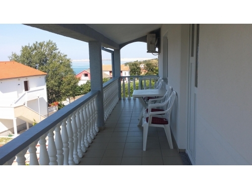 Tento rekreační apartmán se nachází na horním patře dvoupatrového domu a může ubytovat osm lidí. Horní patro je přístupná pouze po schodech a poskytuje 80m² obytného prostoru. Má čtyři ložnice každá s manželskou postelí (tři z postelí 160 x 200 cm, čtvrtý 180 x 200 cm). Má dvě koupelny poskytují sprchový kout, umyvadlo, WC a skří se zrcadlem. Je tu klimatizační jednotka v chodbě v tomto patře, stejně jako větráky v každé ložnici. 20m² balkon nabízí krásný výhled na záliv, ve směru na západ slunce.