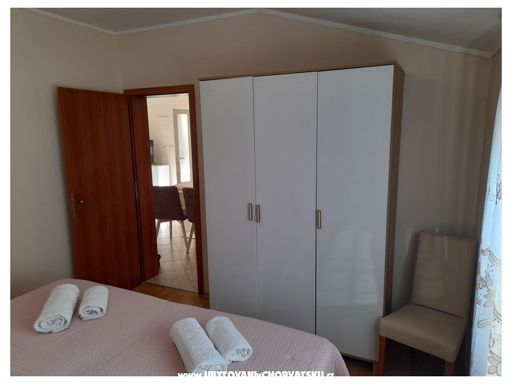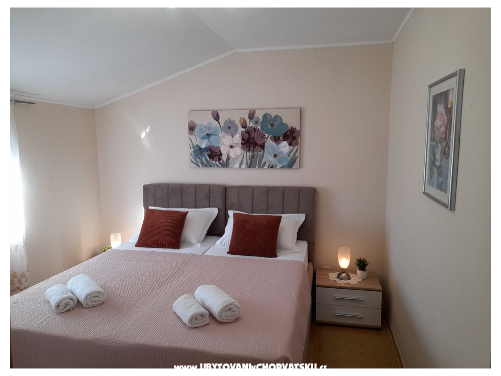 Dodatečné informace Velký dům, který nabízí na dvou podlažích tři apartmány. Všechny tři apartmány mají výhled na moře a velké terasy. Nedaleko od domu je velké parkoviště pro 6 aut. Apartmány mají SAT+TV a Internet wifi.
